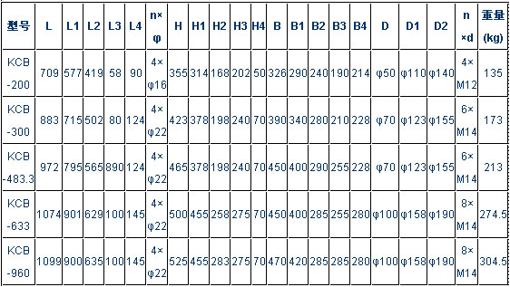 KCB-200~KCB-960型齒輪泵外型、安裝尺寸及重量