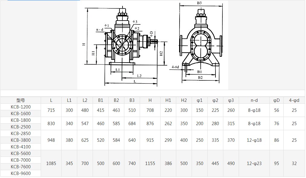 KCB系列齒輪泵性能參數(shù):