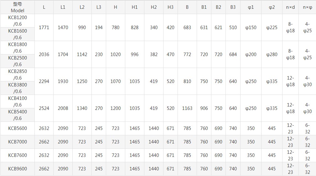 KCB-1200~KCB-9600外型及安裝尺寸