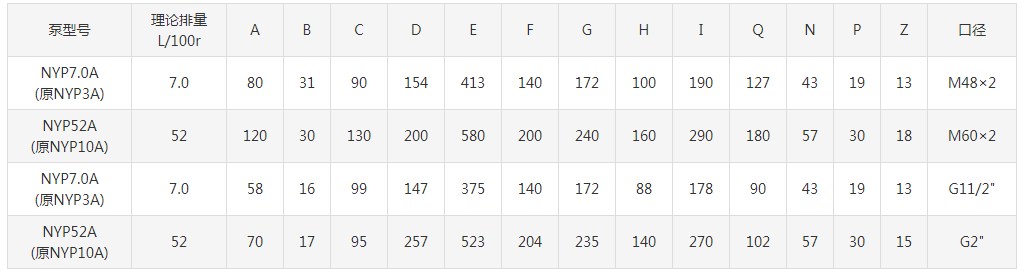 NYP3.6,NYP24,NYP80,NYP111(A),NYP727泵頭外形尺寸